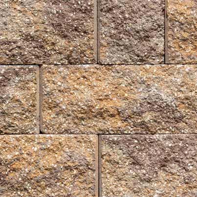 • Six-piece, split-faced, tumbled wall system
